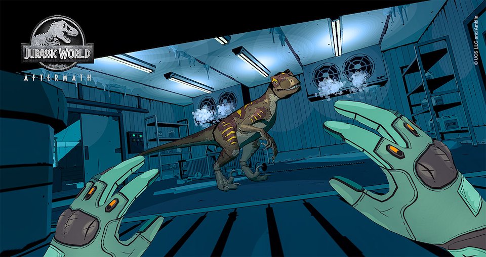 Jurassic World Aftermath is a suspenseful VR survival adventure. Crash-landing on Isla Nublar after the fall of Jurassic World, you find yourself trapped in a research facility when your mission to recover valuable information goes disastrously wrong. To survive, you’ll need to explore and solve puzzles while distracting and evading the three ferocious Velociraptors that stalk your every move.