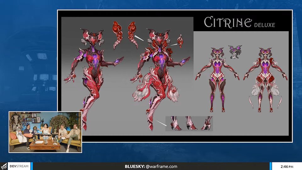 We love working on Warframe! Thank you to Digital Extremes for the shout-out on their recent devstream and giving a sneak peek of the new Citrine Deluxe skin, themed around jewels and roses.