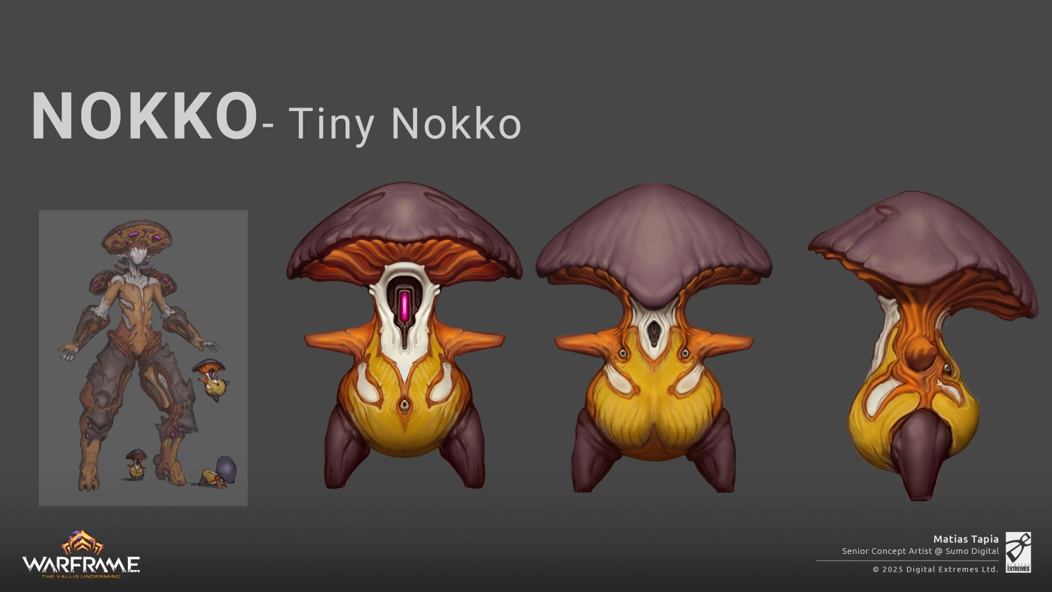 The 62nd Warframe has sprouted! Meet Nokko, him and his little Sprodlings are easy to root for with their charm and cap-tivating energy. With an ability like “Stinkbrain” he is sure to grow on you! Nokko also comes with his signature Arbucep Archgun that packs a serious punch with its six homing missiles, each bearing a payload of one of the six combined elements that detonate upon impact. Mushroom? More like mush-BOOM.